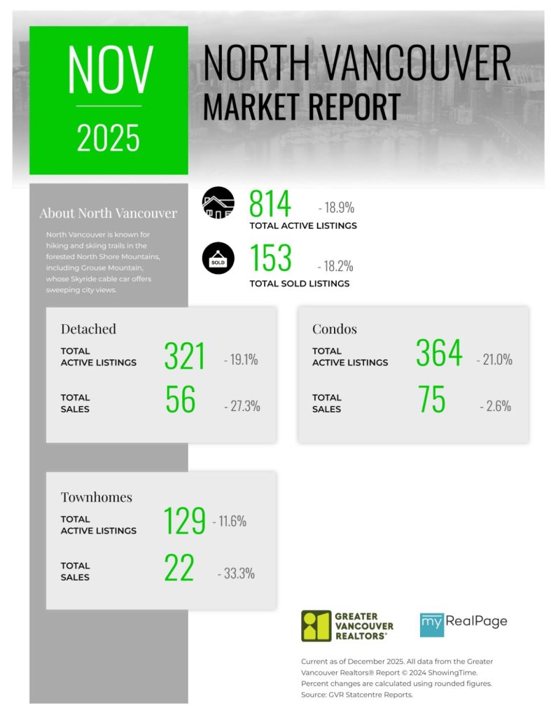 The Greater Vancouver REALTORS® (GVR) reports that residential sales in the region totalled 1,846 in November 2025, a 15.4 per cent decrease from the 2,181 sales recorded in November 2024. This was 20.6 per cent below the 10-year seasonal average (2,324).